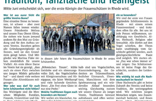 Vor einiger Zeit kam bei uns die Idee auf, neben den bereits bestehenden Rheder Traditionsvereinen den Frauenschützenverein zu gründen. Realisiert wurde unsere Idee mit dem Schreiben und Besprechen der Vereinssatzung am 10. August, sowie mit unserer Gründungssitzung und Vorstandswahlen am 31. August.